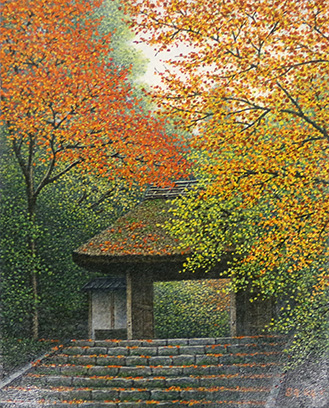 酒井英利 | 油彩 | F3 | 秋の山門 | 北九州 |