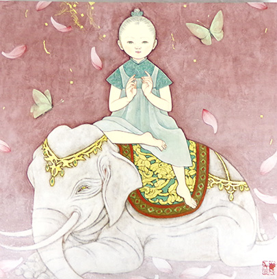 坪内好子 | 銅版画 | 75×125 | しろい象のひみつ | 北九州 |